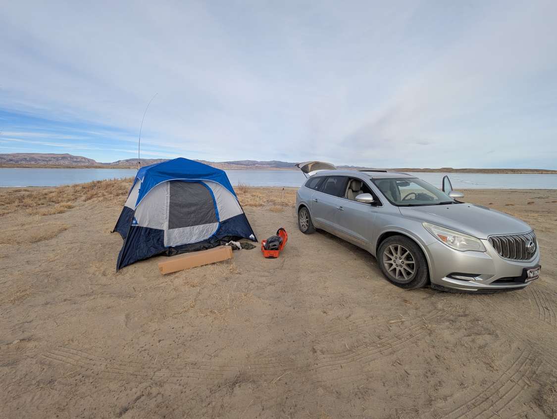 Here is our setup at Boysen State Park overlooking a beach about the frozen lake.