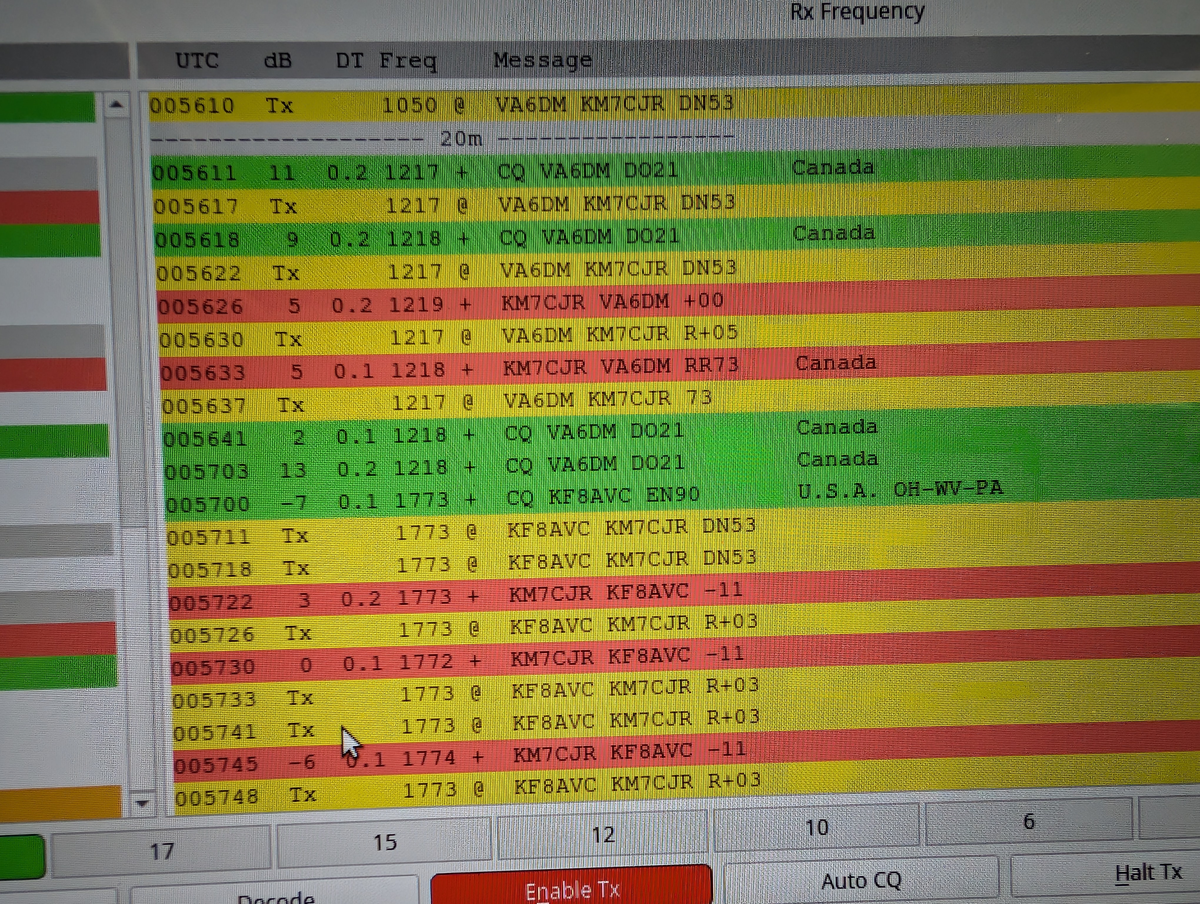 You can see from the exchange with VA6DM above that, with a good signal on both sides, you can complete an exchange in around 11 seconds, which is really nice. Might be useful for "bonus" or "backup" contacts during a POTA activation. I'm not sure if I will do too much more with it until it is easier to operate on FT2 in WSJTX